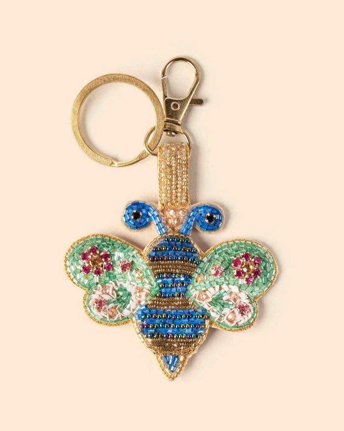 Handmade Beaded Abstract Crescent Keychain Unique Designer Bag Charm