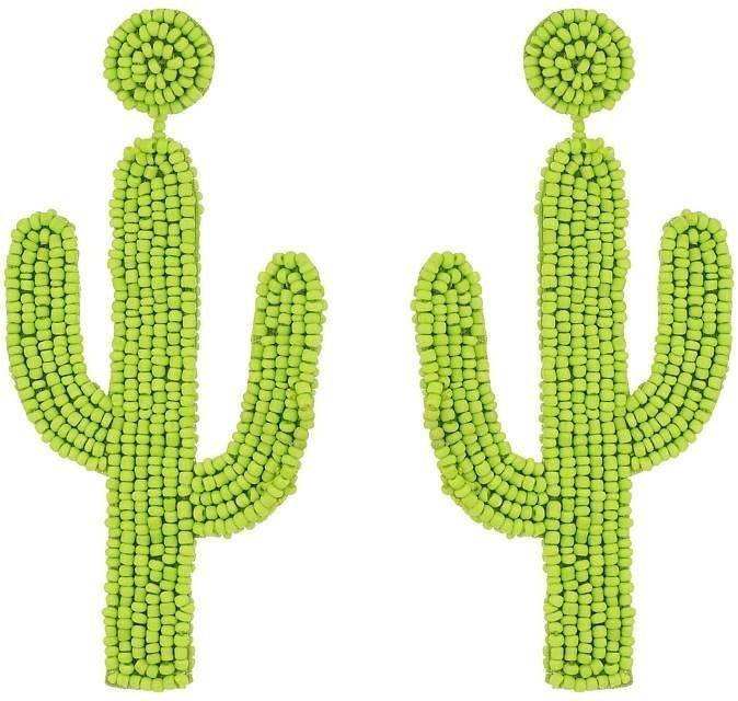 Handmade Beaded Cactus Earrings Embroidered Black Drop Dangle Design Western Fiesta Jewelry for Women Girls Custom Wholesale