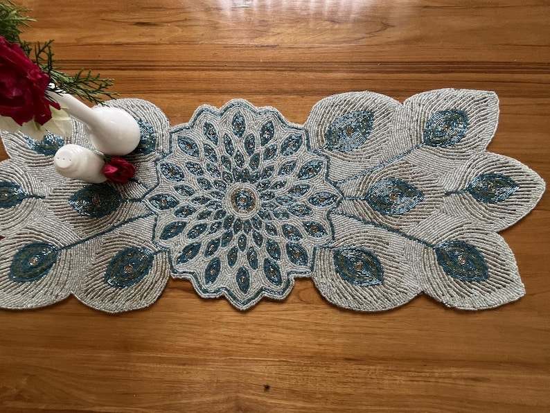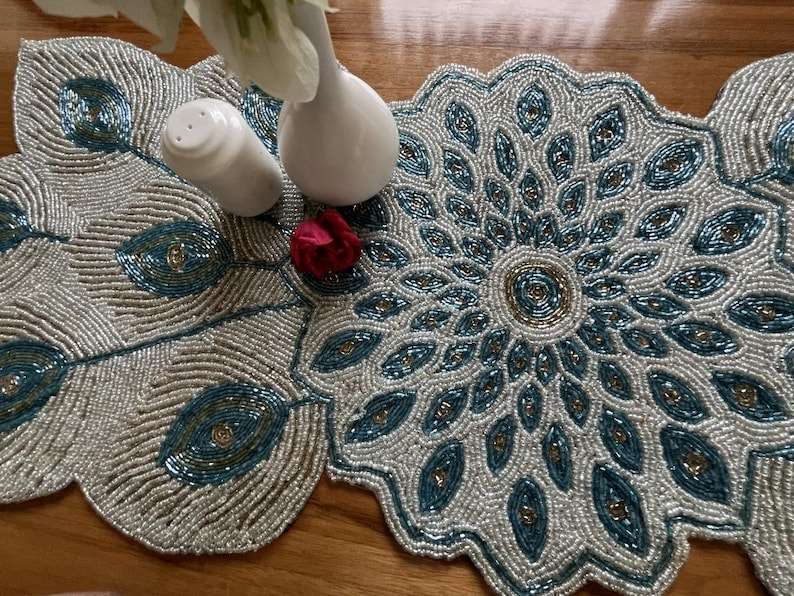 Handmade Beaded Christmas Table Runner: Elegant Festive Decor