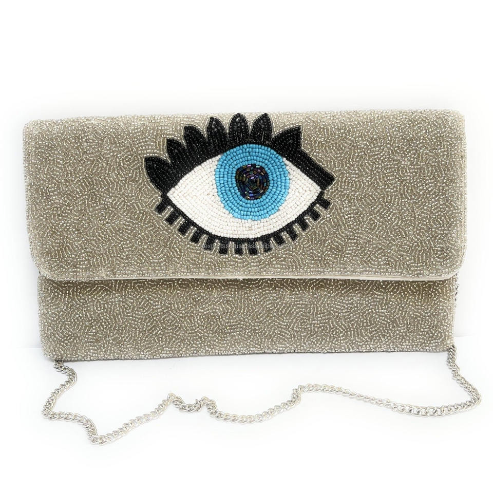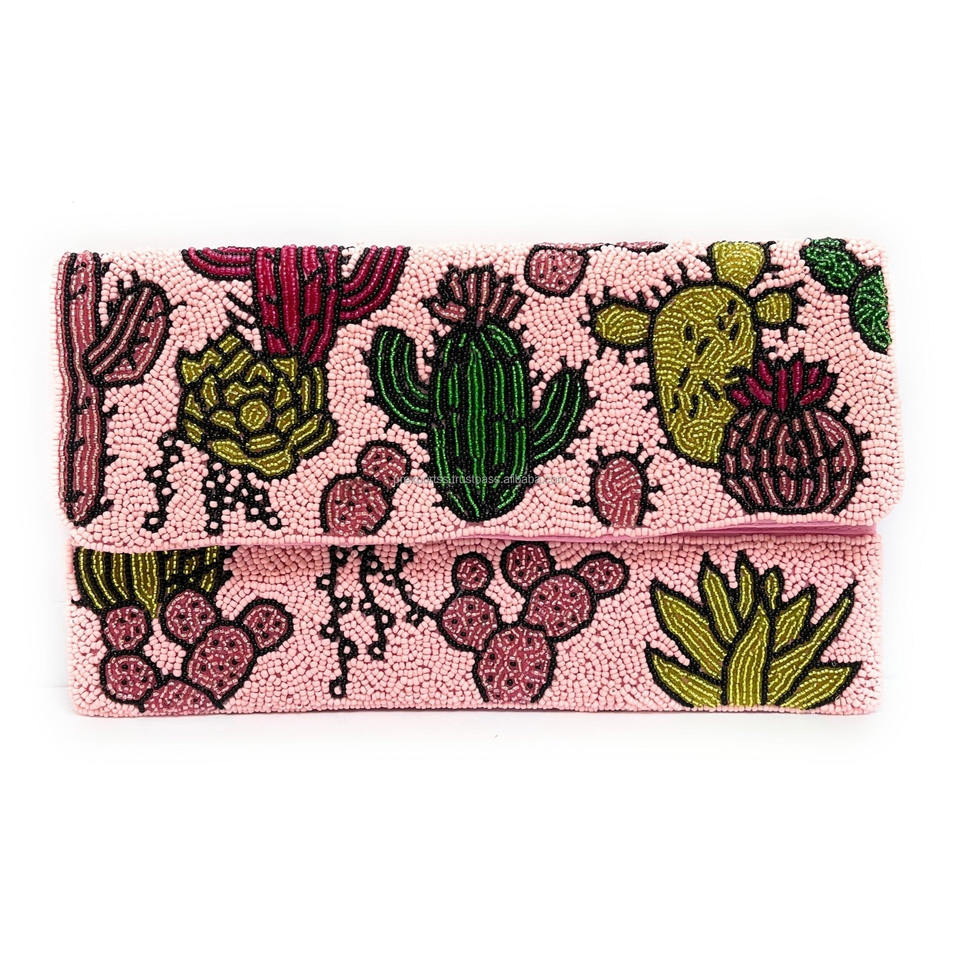 Handmade Silk Beaded Foldable Clutch Bag Multicolor Boho Style Women Durable Magnetic Closure Anti-Theft Portable Evening Party