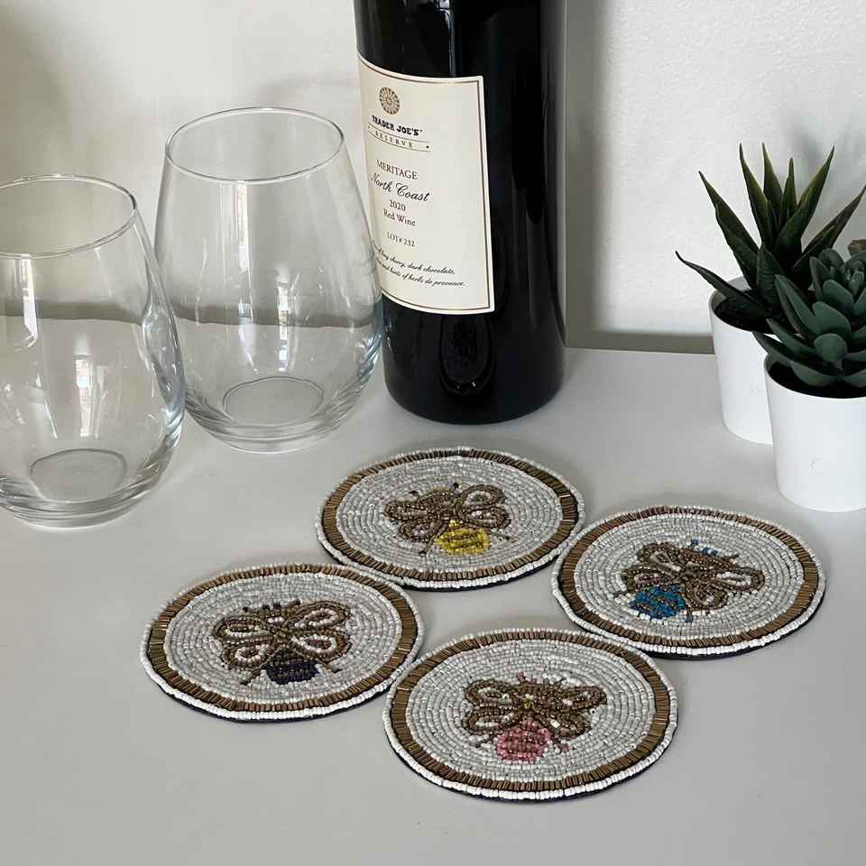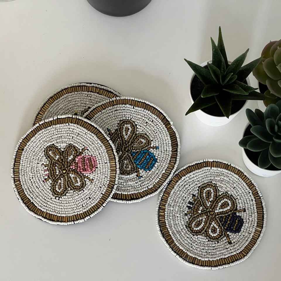 Keyword:Handmade Customized Beaded Tea Coaster Set with Honey Bee Design
