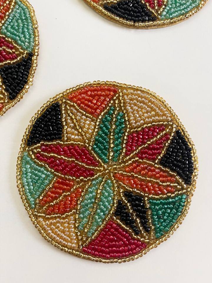 Handmade Beaded Coasters - Boho Drink Coasters with Polyester Backing (4x4 Inch)