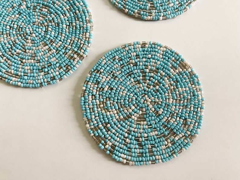 Handmade Beaded Coasters - Boho Drink Coasters with Polyester Backing (4x4 Inch)