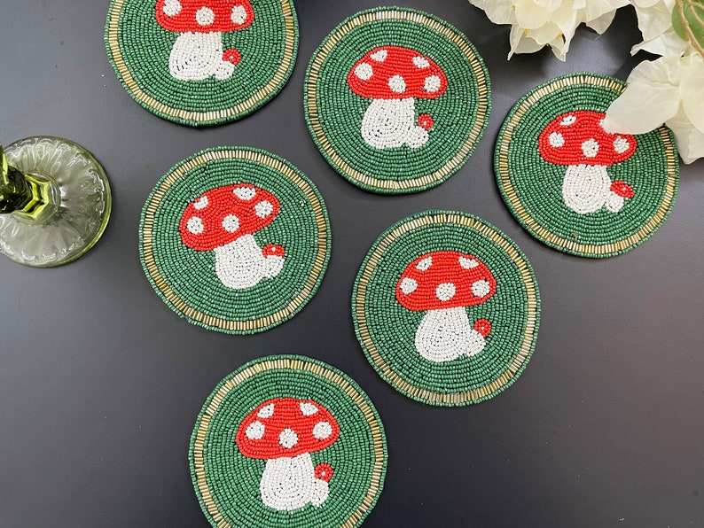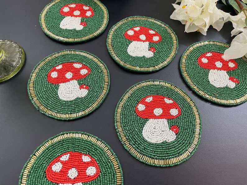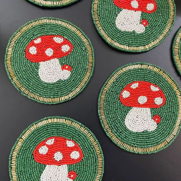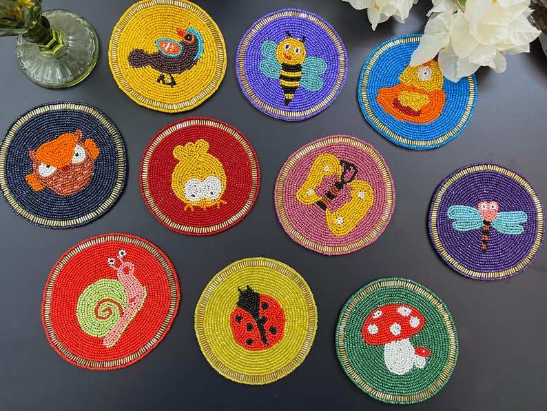 Handmade Beaded Coasters - Boho Drink Coasters with Polyester Backing (4x4 Inch)