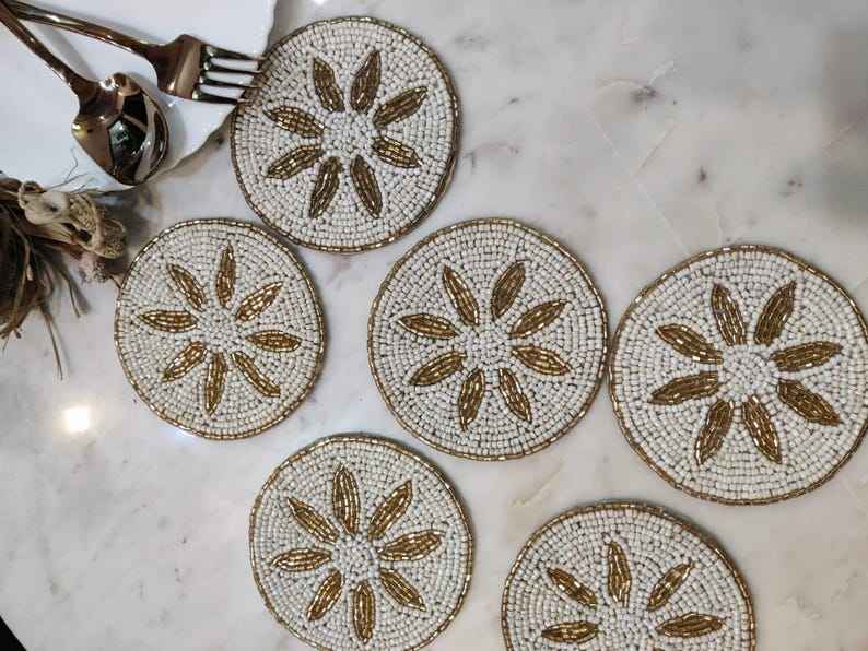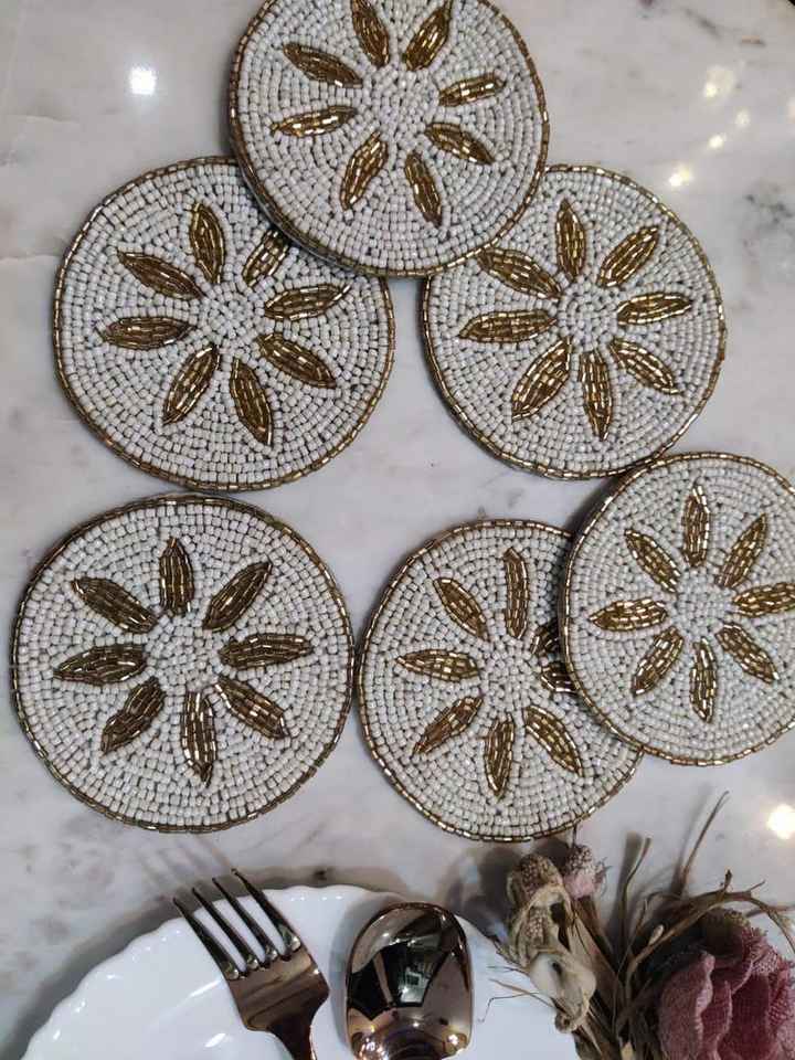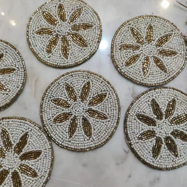 MS HANDICRAFT Handmade Classic Beaded Drink Coasters with Polyester Backing (4x4 Inch)-Portable Church and Religious Gifts