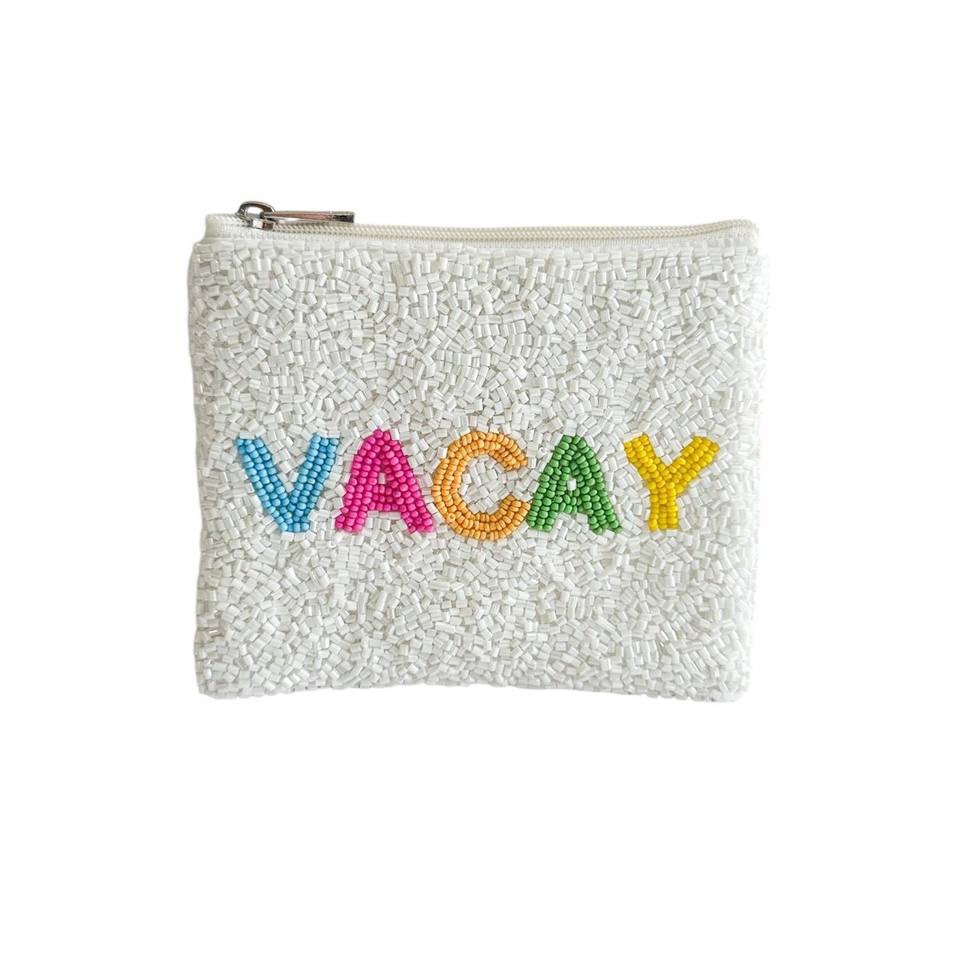 Handmade Beaded Coin Purse Out of Office Quote Design Black Sunglasses Embroidery White Beadwork Handcraft Fashion Travel Pouch
