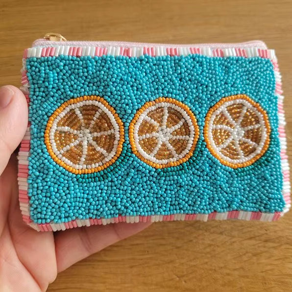 Handmade Beaded Coin Purse Turquoise Citrus Slice PouchSummer Fruit WalletColorful Beaded Zipper Bag Small Gift