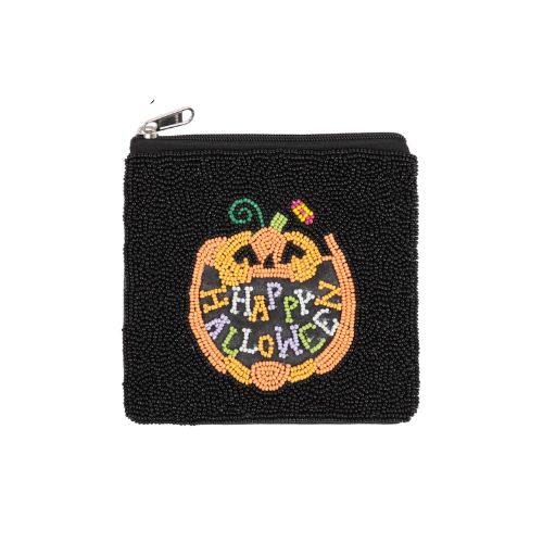 Handmade Halloween Spooky Design Beaded Coin Purse with Zipper Closure for Trick-or-Treat Costume Accessories Minimum Order 3pcs