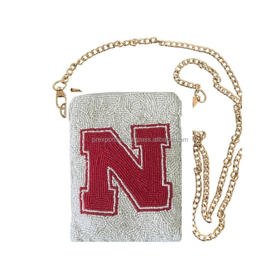 Handmade Beaded Crossbody Phone Bag Red N Letter Logo Design Small Shoulder Purse Women Party Evening Clutch Bulk Supply