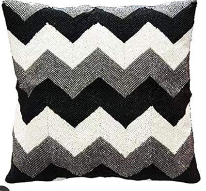 Handmade Beaded Cushion Covers Black White Decorative Throw Pillow Covers for Sofa Living Room