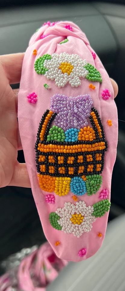 Handmade Beaded Knot Headband Women Premium Pink Fabric Hairband Pearl Flower Embellishments Luxury Bohemian Party Accessories