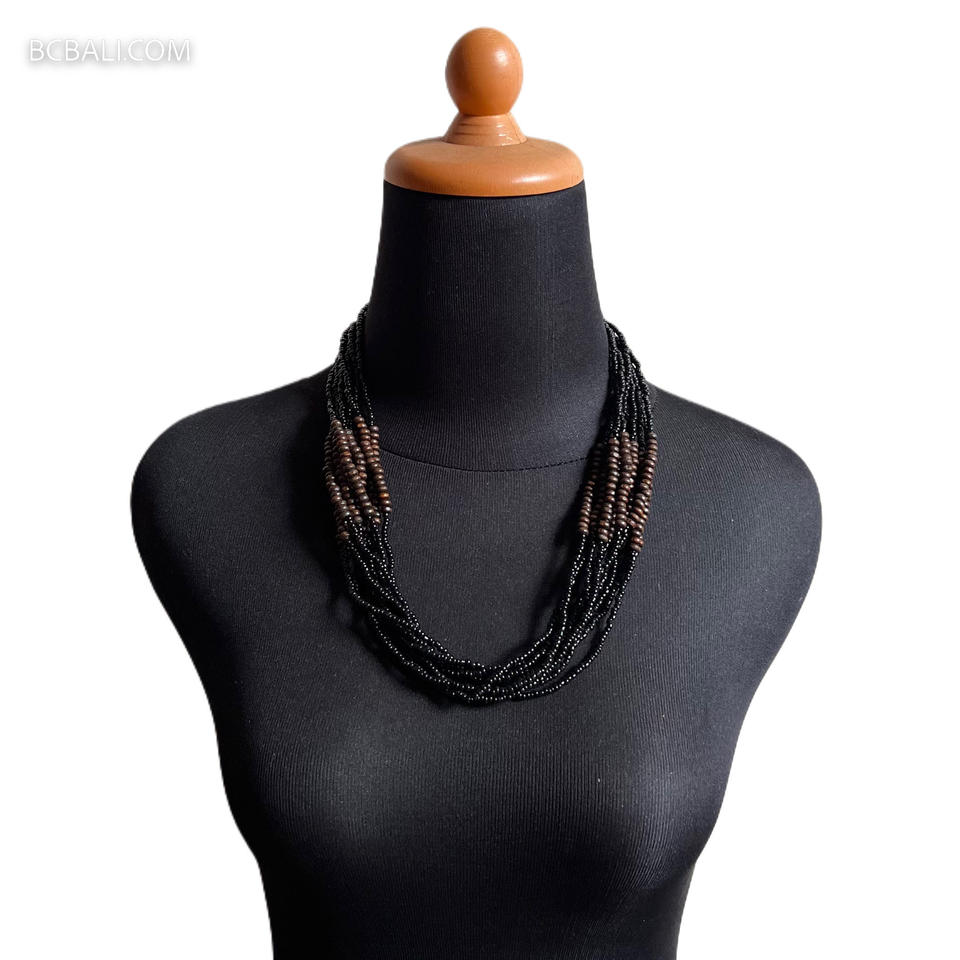 Handmade Beaded Necklace Wooden Chain Unique Balinese Artisan Original Design Featuring Pearl Diamond Fashion Beaded Necklaces