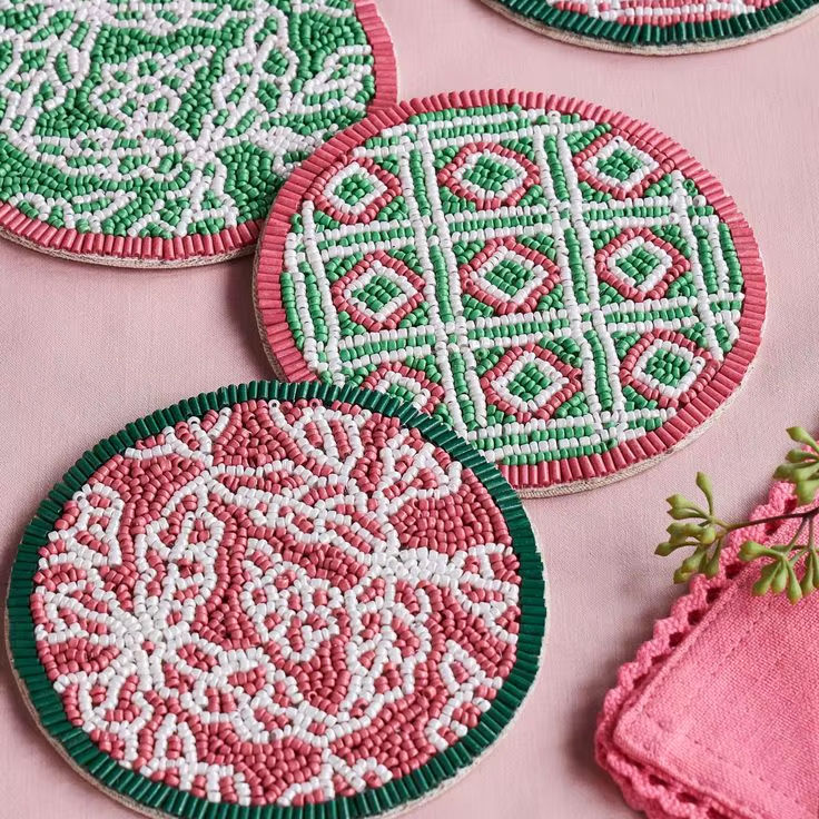 Handmade Beaded Pattern Coaster Decorative Table Drink Mat Set