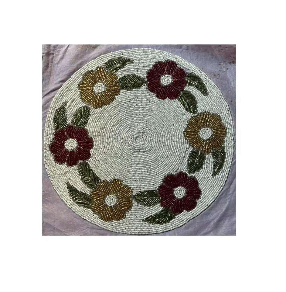 Handmade Beaded Placemat Unique Round Glass Design Multicolor Luxury Coffee Table Decorative Mats for Kitchen Use