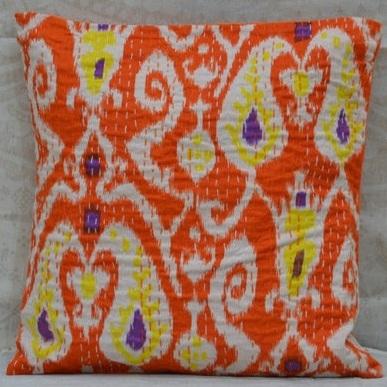 Handmade Beautiful Cotton Kantha Square Cushion Cover Floral Embroidered Pillow Cover for Home Hotel & Sofa Decorative Use