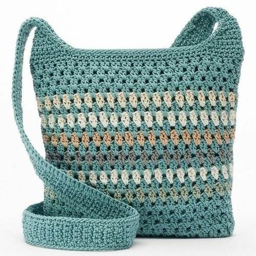 Handmade Beautiful Crochet Tote Bag Logo Patterned Passport Crossbody with Large Main Compartment and Attached String