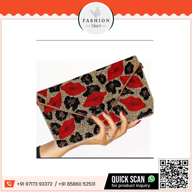 Handmade Beautiful Lips Beaded Crossbody Bag for Ladies White & Black Evening Shoulder Bag