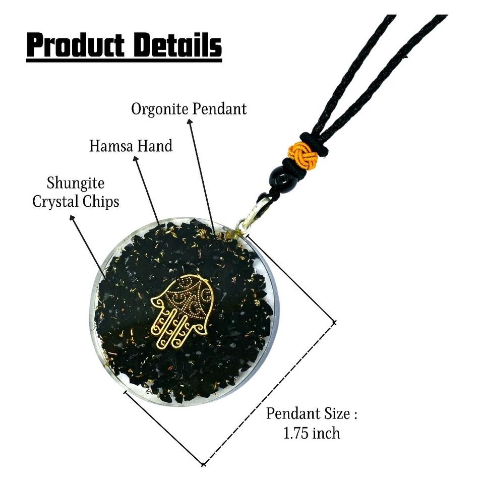 Product name:SHUNGITE CHIPS ORGONE PENDANT WITH HAMSHA LOGO