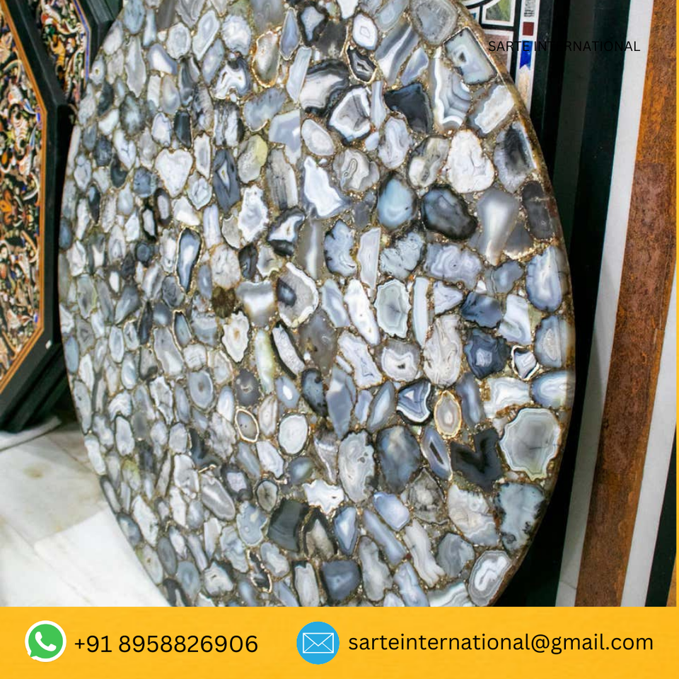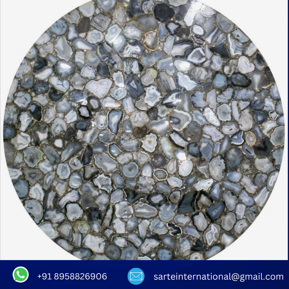 Handmade Beautiful Round Shape Black Agate Stone Table Top Semi-Precious Agate Marble Slab