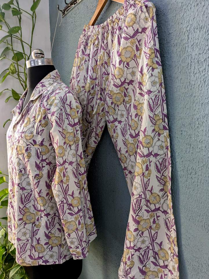 Handmade Beautiful Woven Cotton PJ Set Floral Printed Summer Lightweight Breathable Smooth Gifts for Her