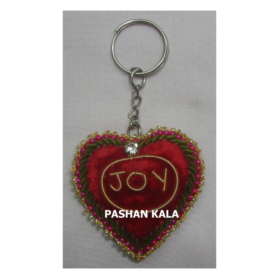 Handmade Beautiful key Chain Antique Art Zari Embroidery Work Natural Color Heart Shape Use Gift And Bag Decoration low price
