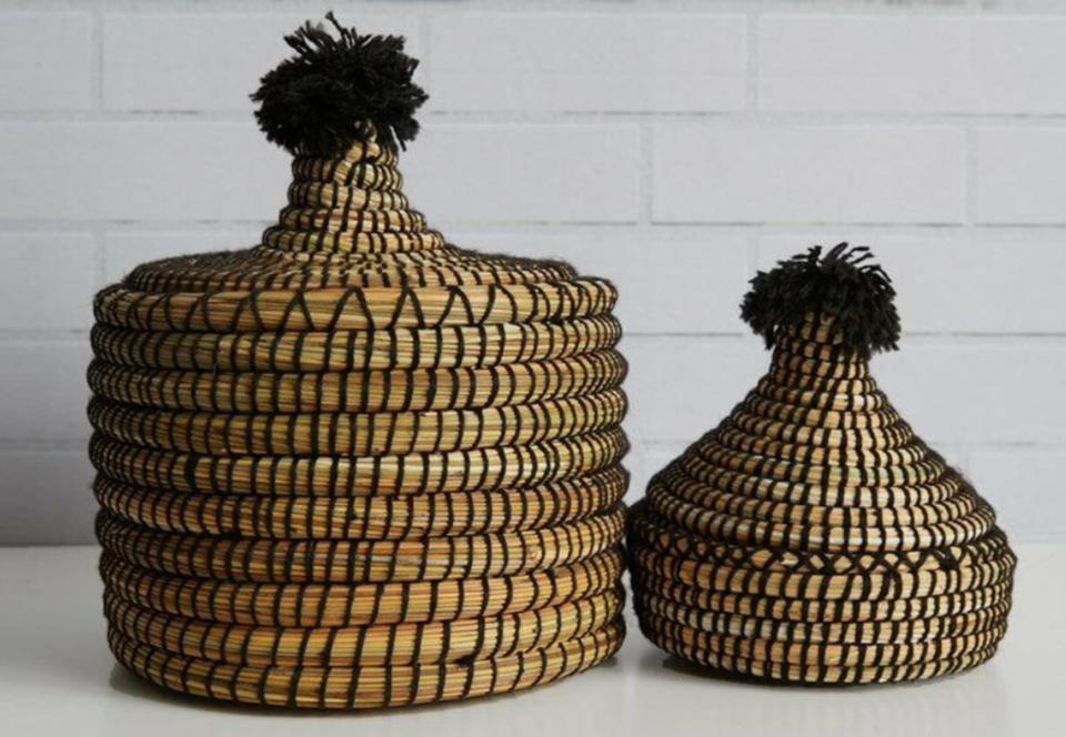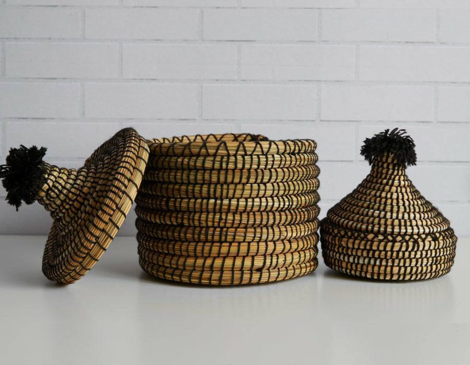 Mode:Berber Moroccan Round Storage Basket With Lid