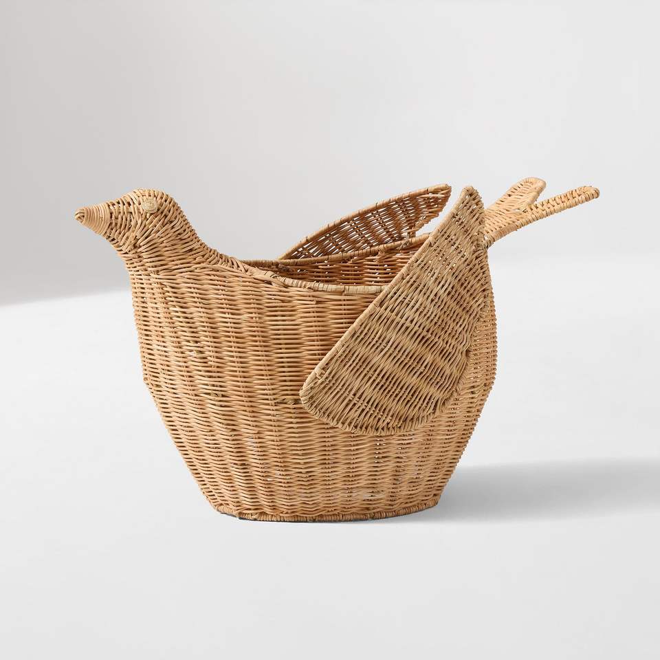 Handmade Bird Shaped Wicker Basket Decorative Rattan Storage Basket Unique Animal Design Organizer Hamper For Home Decoration