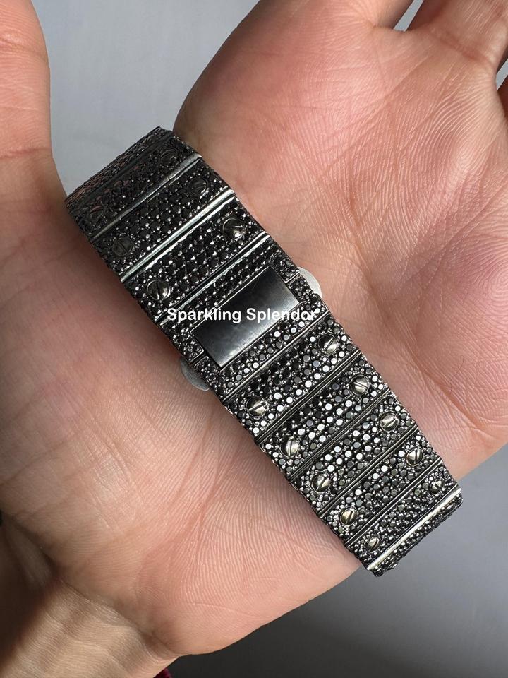 Handmade Black And White Moissanite Studded Iced Out Watch for Men and Women Custom Stainless Steel Mechanical Analog Watch
