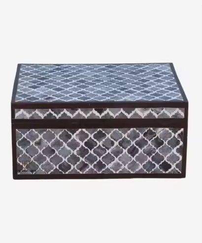 Handmade Black Bone Inlay Floral Pattern Jewelry Box Large Rectangular Wooden Keepsake Chest Luxury Storage Trunk Organizer