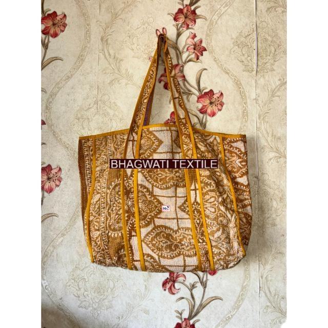 Handmade Black Cotton Block Print Quilted Travel Shopping Bag Geometric Pattern Everyday Use Great Gift for Someone Special