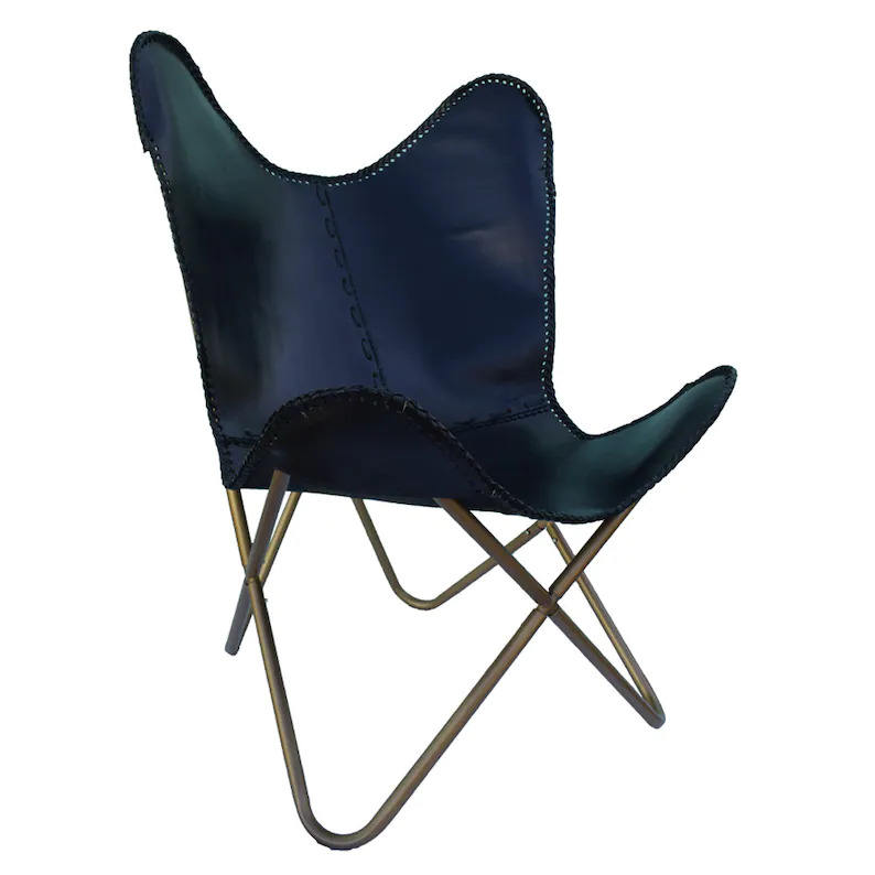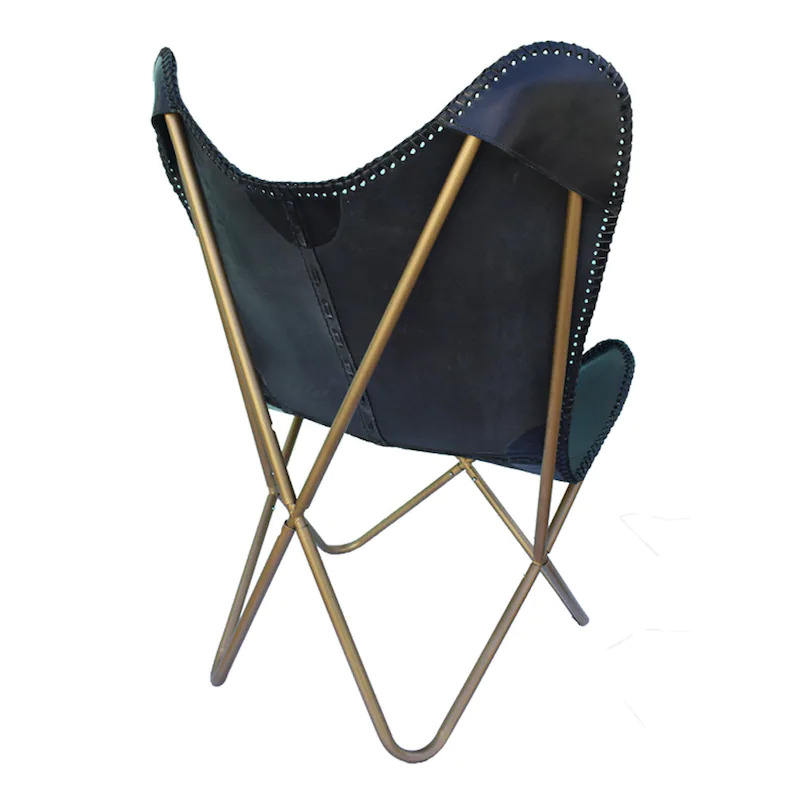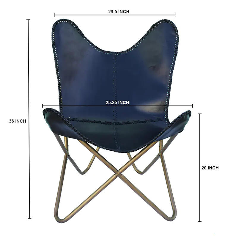 Handmade Black Genuine Leather Butterfly Chair Cover Rustic Foldable Leisure Furniture for Bedroom Outdoor Home Office Living