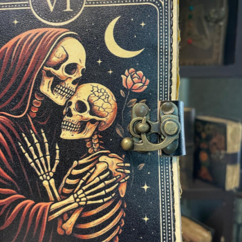 Handmade Black Leather Hardcover Journal Book Shadows Gothic Skeleton 'The Lovers' Grimoire Vintage Deckle Edge Cotton Paper