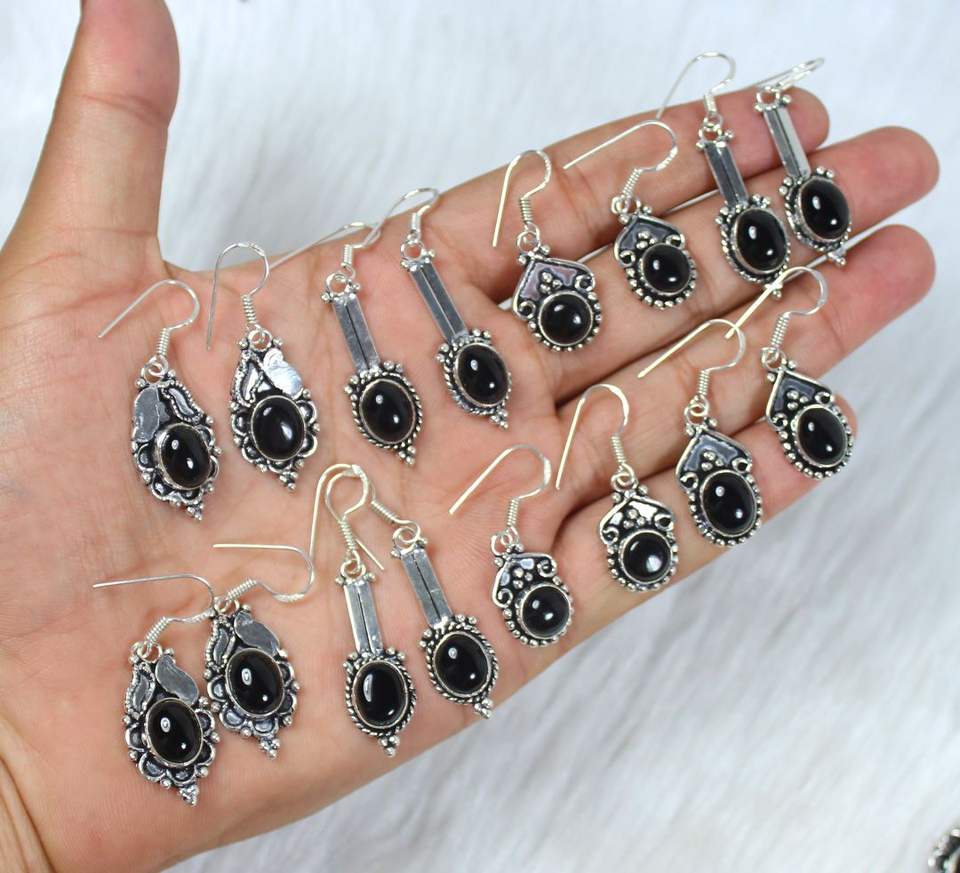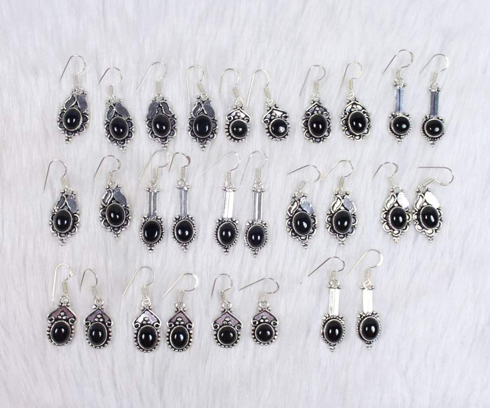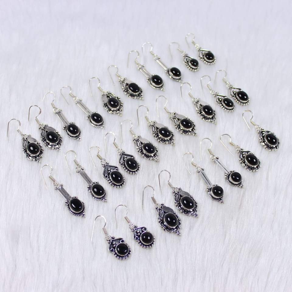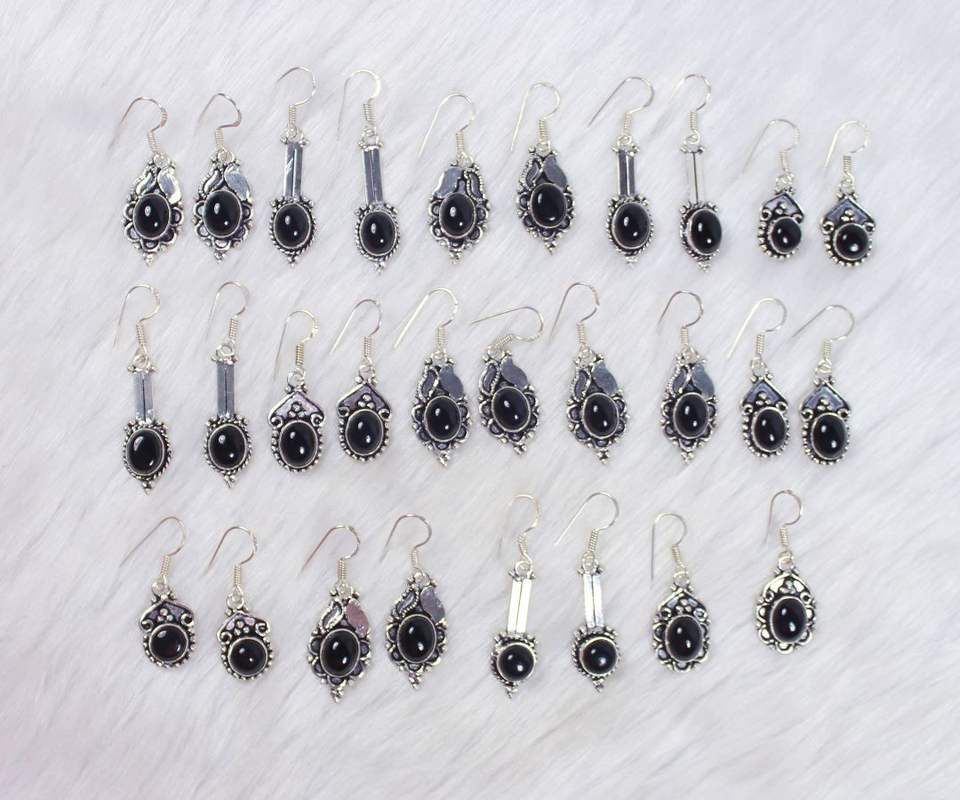 Product Name:Natural Black Onyx Gemstone Silver Plated Earrings
