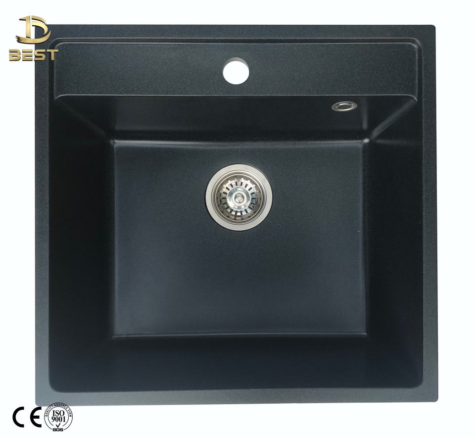 Handmade Black Quartz Single Bowl Kitchen Sink Vietnam-Made Ceramic Stainless Steel Drainer No Faucet Included-Composite Granite