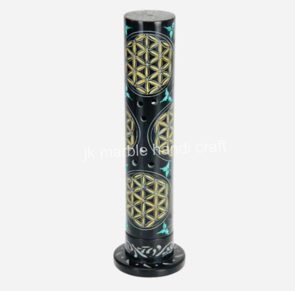 Handmade Black Soapstone Incense Stick Holder Candle Burner Leave Stick Stand Star Anise for Scent Religious