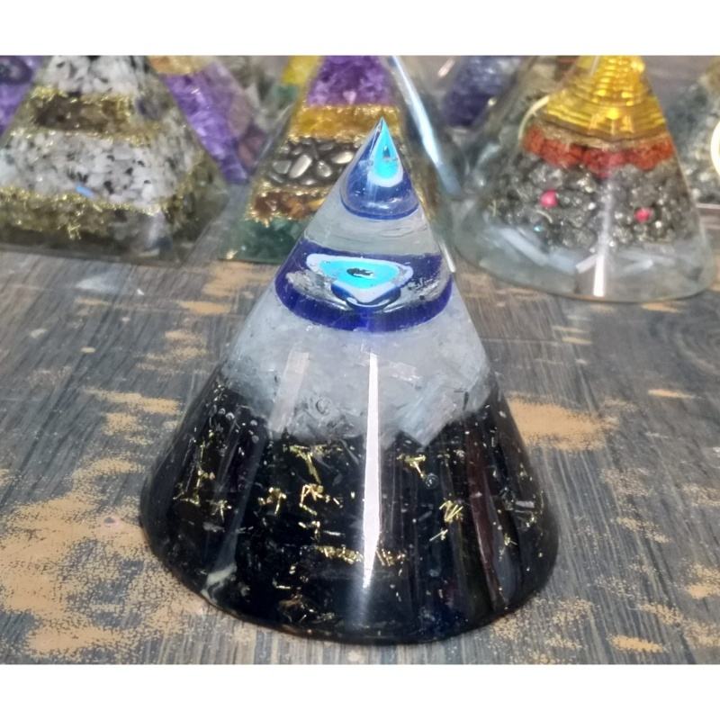 Handmade Black Tourmaline Selenite Evil Eye Orgone Cone Pyramid Feng Shui Cross Eco-Friendly Creative Gift EMF Protection