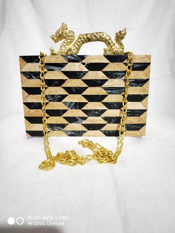 Handmade Black White Wooden Mosaic Evening Bag Fashionable Canvas Cotton Lining Clutch Purse for Mother's Day Party Sling Bag