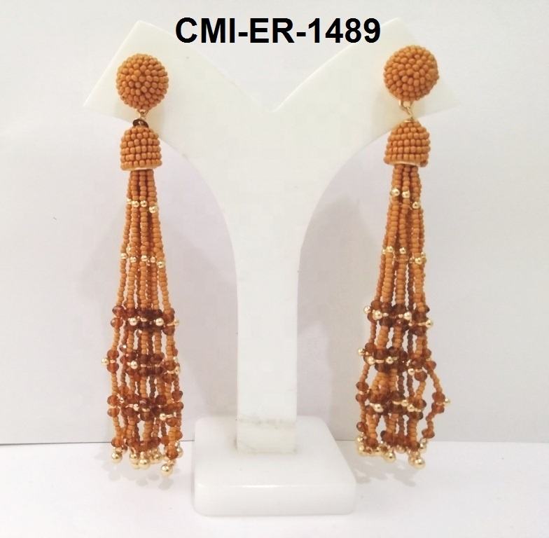 Handmade Black Wine Beaded Tassels Long Earrings Boho Mexican Style Classic Studs Black Bordeaux Long