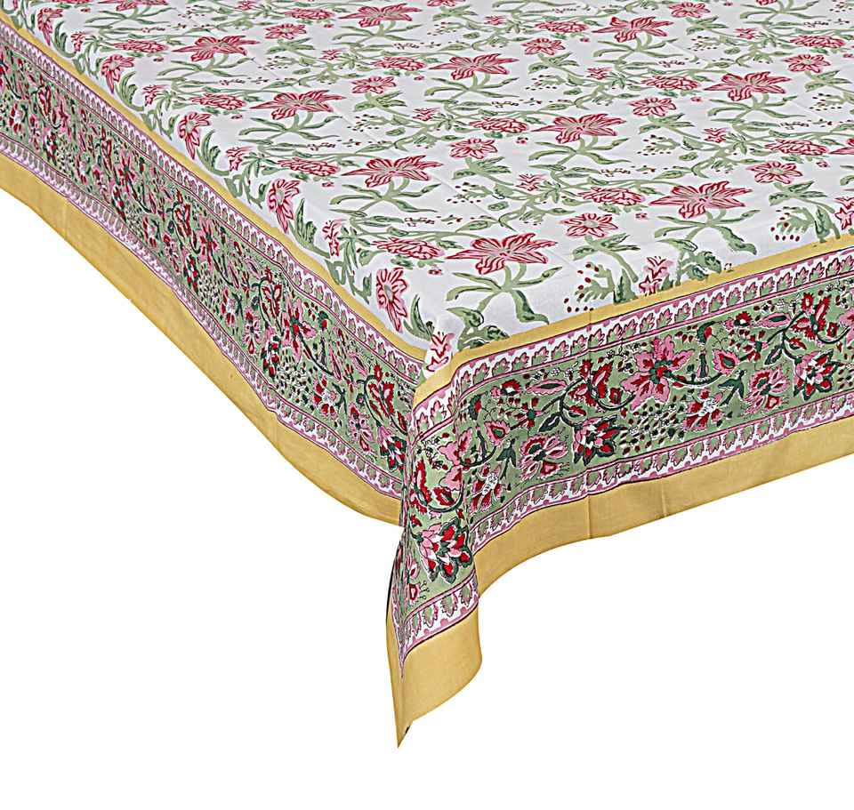 Handmade Block Print Floral Design Rectangle Tablecloth with 8 Napkins Cloth Table Cover for Weddings and Banquets