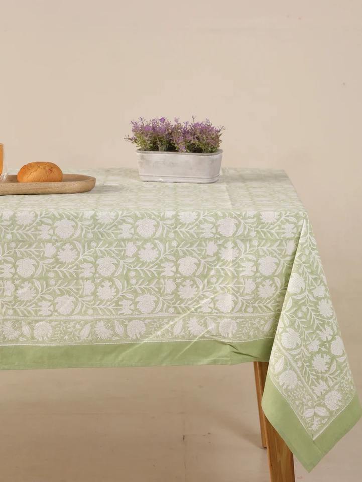 Handmade Block Print Floral Design Rectangle Indian Block Print Floral Cotton Table Cover Table Cloth for Home
