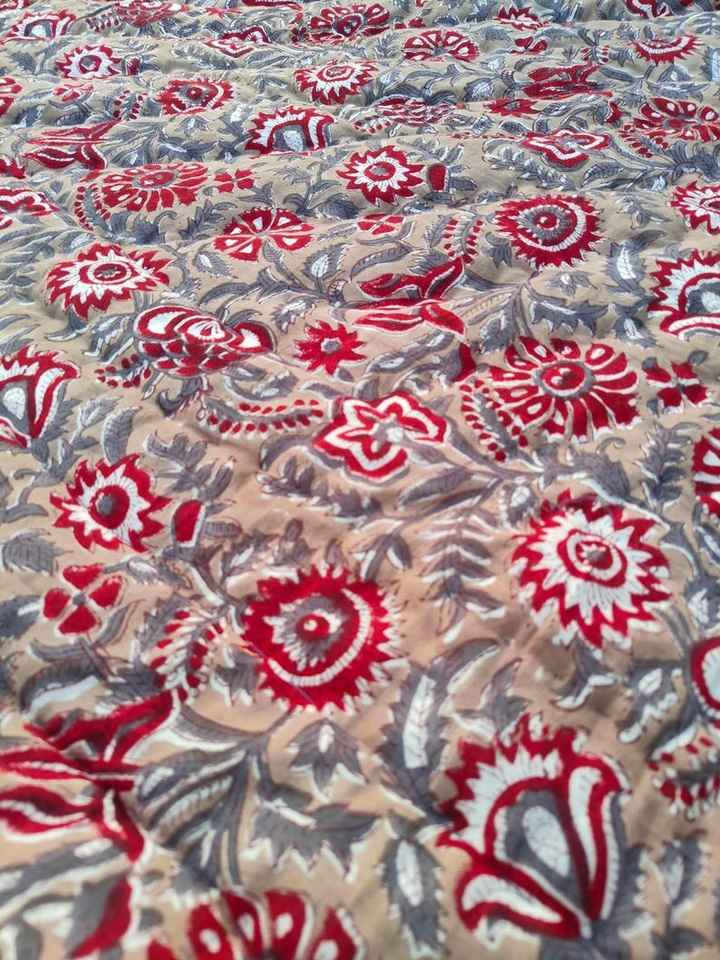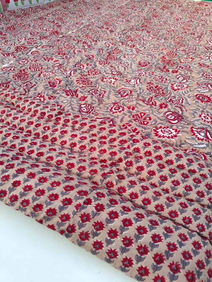 Handmade Block Print Razai Quilt Quilted Bedspread Cozy Bedding Gift