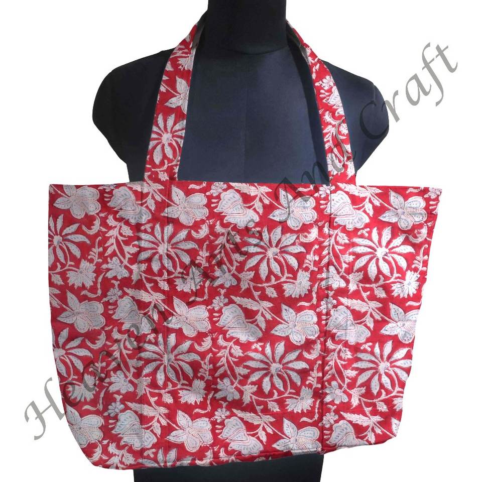 Handmade Block Printed Cotton Canvas Tote Bag Vintage Bohemian Ladies Shoulder Bag Two Straps Indian Fashion Shopping Tote Bag