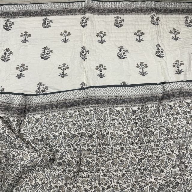 Handmade Block Printed Cotton Razai Quilt Reversible Hand Stitched Organic Bedding Blanket