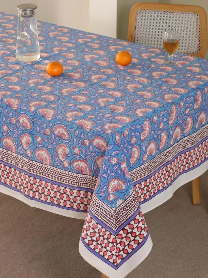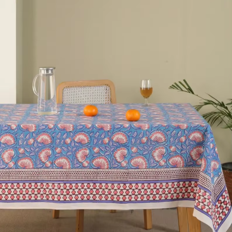 Handmade Block Printed Cotton Tablecloth Napkin Set Floral Pattern Indian Wedding Table Cover for Home
