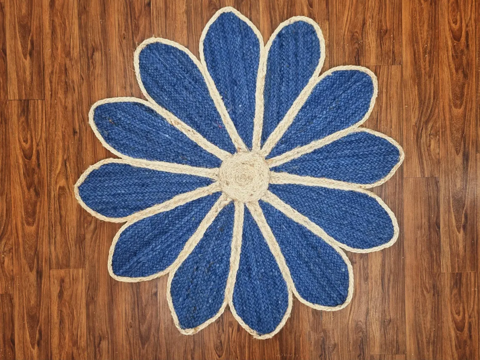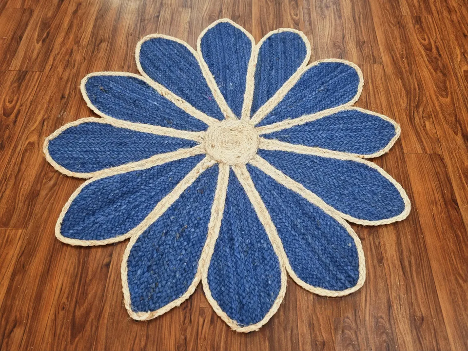 Handmade Blue Jute Area Rug for Living Room Bedroom Dining Room Entryway Outdoor Porch with Abstract Pattern Decorative Jute Rug
