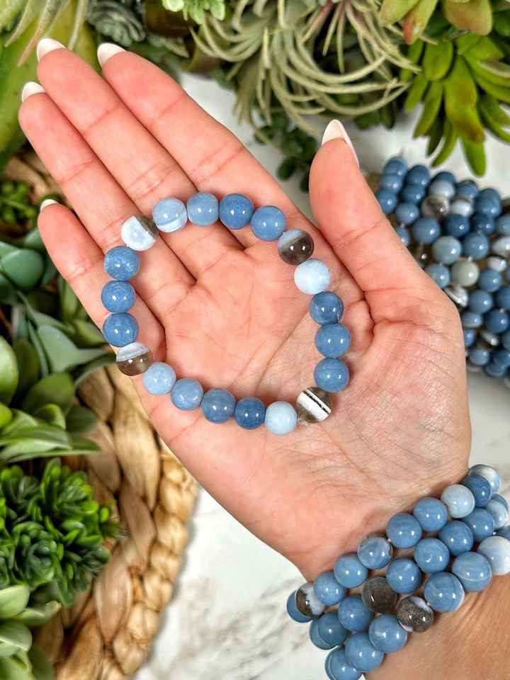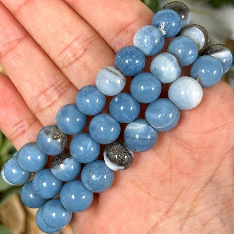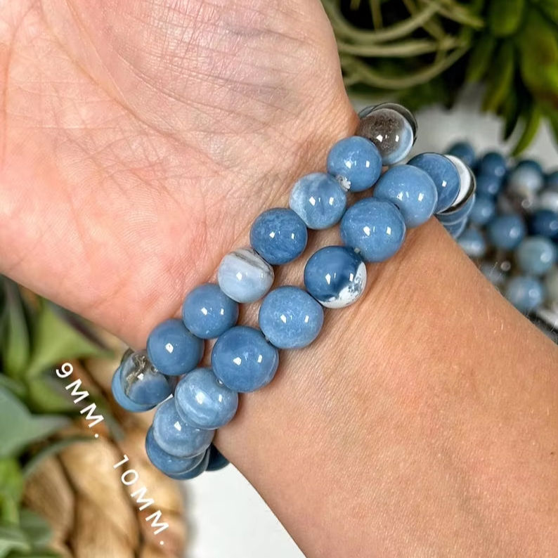 Handmade Blue Opal Gemstone Beaded Bracelet Trendy Style for Throat Chakra Balance for Gift