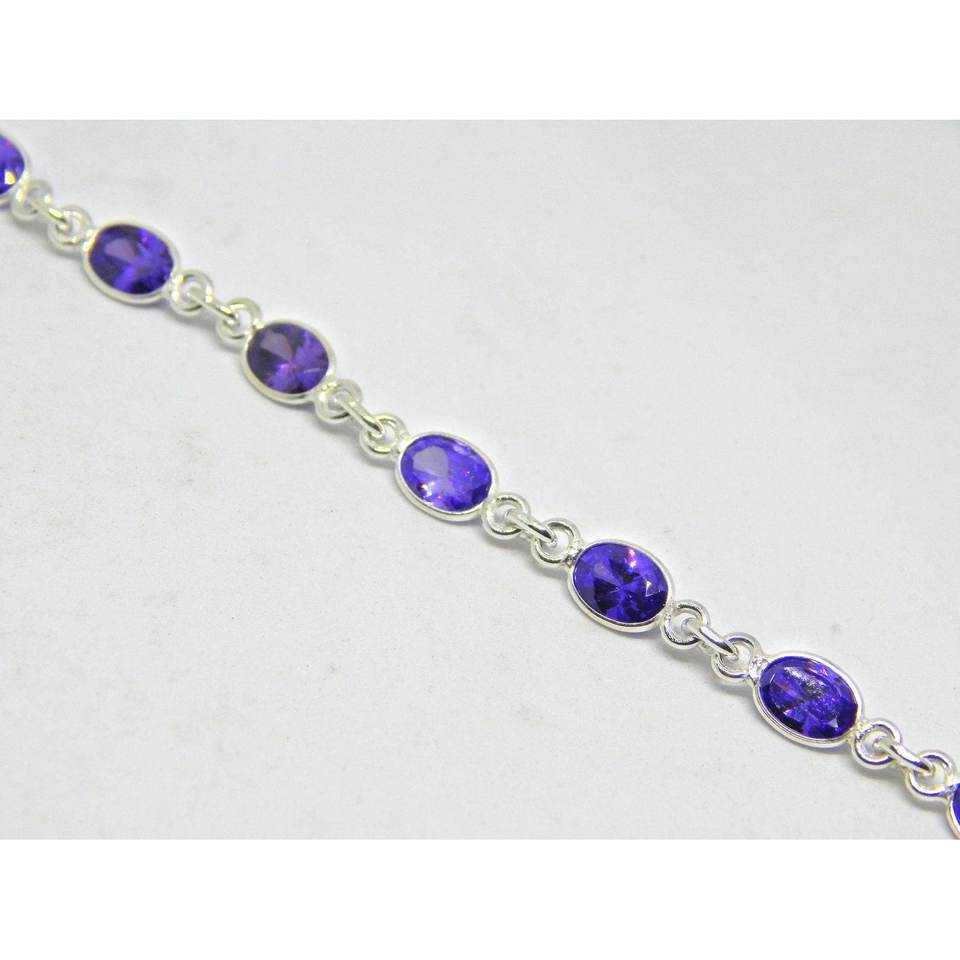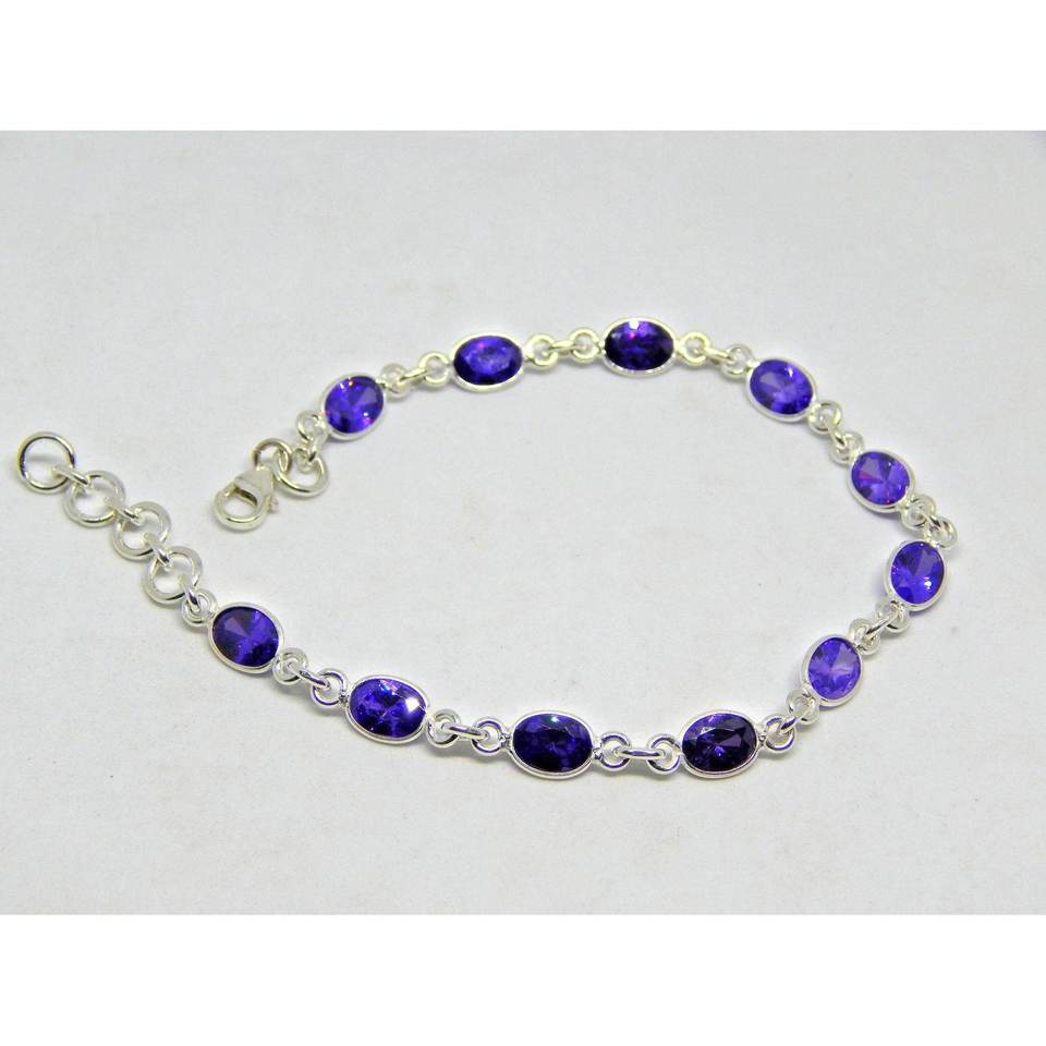 Handmade Blue Zircon Bracelet in 925 Sterling Silver Elegant Fine Charm Jewelry for Her Gift BR0170-GS