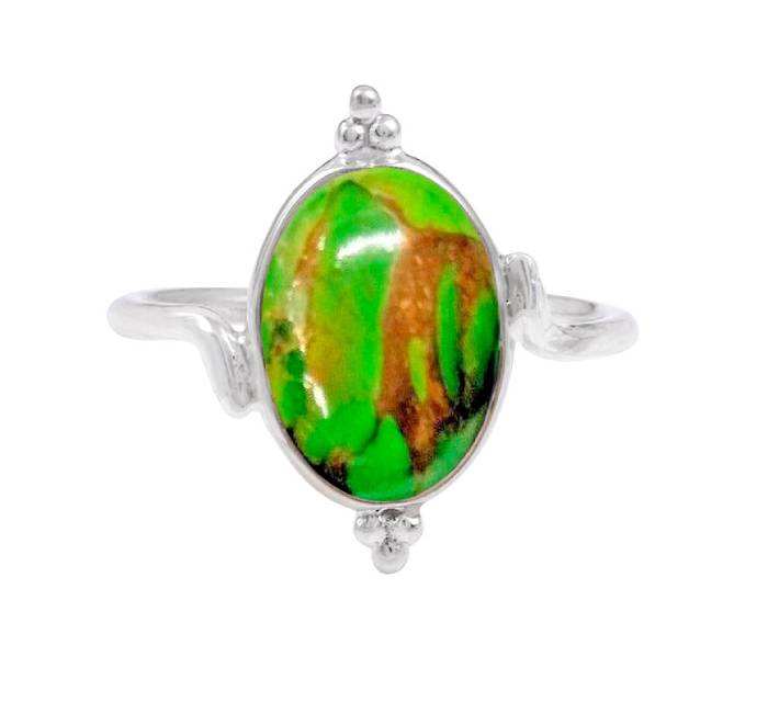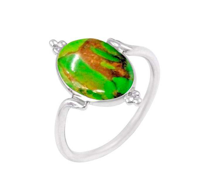 Handmade Bohemian 925 Sterling Silver Ring Attractive Green Copper Turquoise Oval Stone Green Copper Turquoise Ring