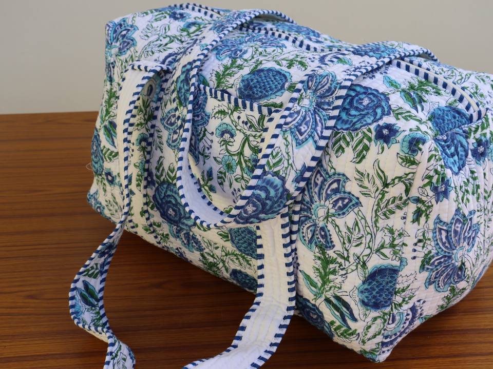 Handmade Bohemian Block Print Large Cotton Duffle Bag Vintage Sport Travel Gym Tote for Women Weekender Weekender Holiday Gift