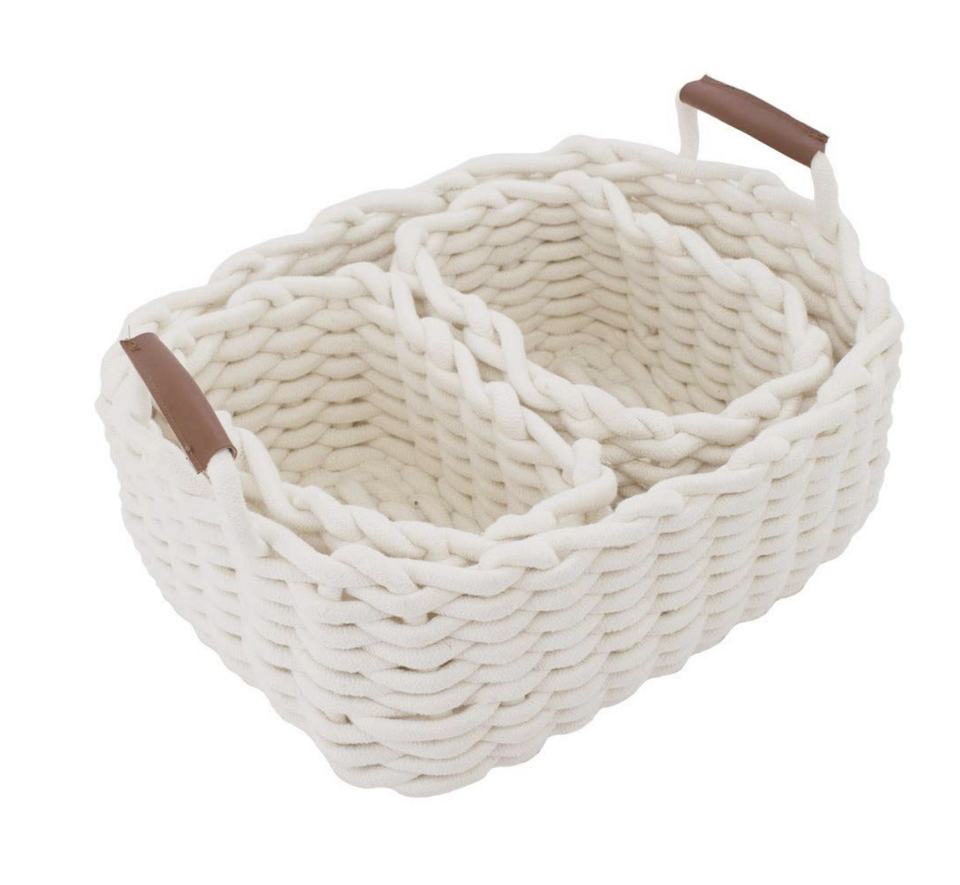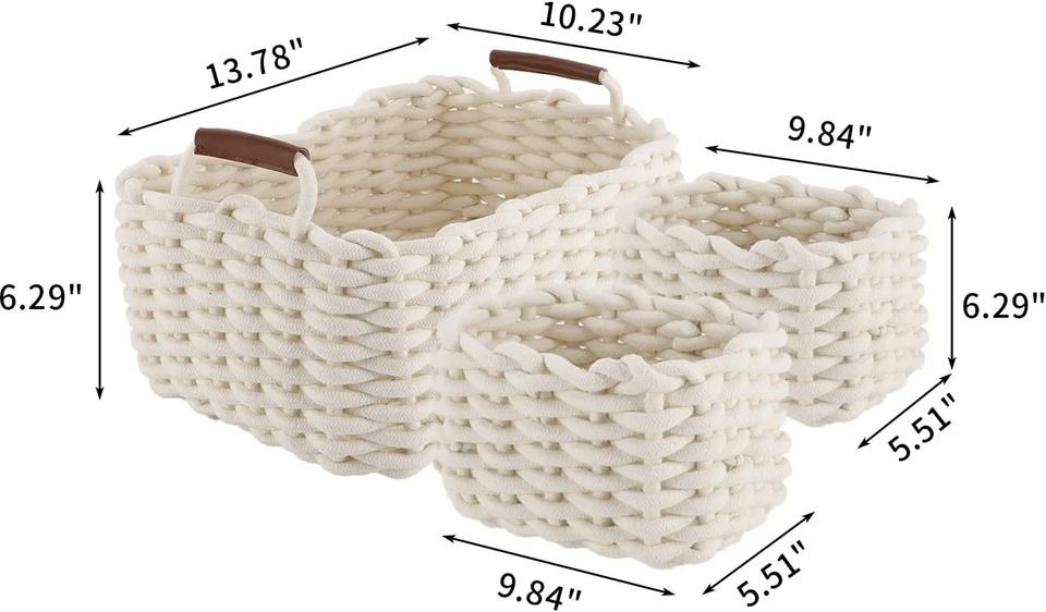 Handmade Bohemian Braided Thick Cotton Rope Storage Bins 3-Piece Set for Shelves Decor Woven Rope Basket Storage